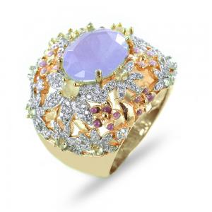 Anello a fascia fiori zirconi e quarzo lilla GIOIELLI SAMUI