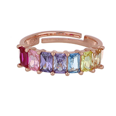 L'anello Dolly Park riviera arcobaleno  è acquistabile in parure di gioielli in argento rosè e zirconi arcobaleno, parure formata da bracciale, collana, orecchini e anello.