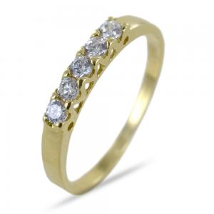 Questo anello è una classica riviera in oro giallo con zirconi in oro bianco. Questo anello è perfetto come idea regalo per una signora con un gusto classico, per ogni fascia di età.