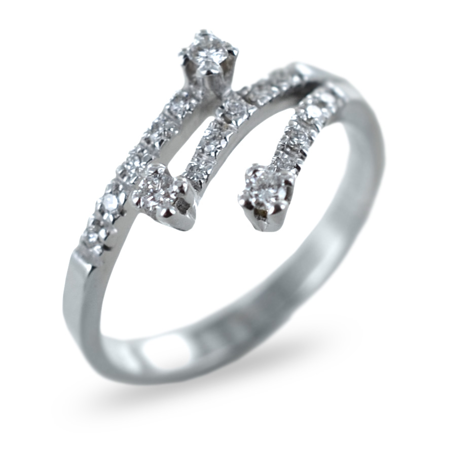 Anello trilogy fantasia in oro e diamanti, anello moderno con diamanti sul gambo collezione Gioielli Marilyn