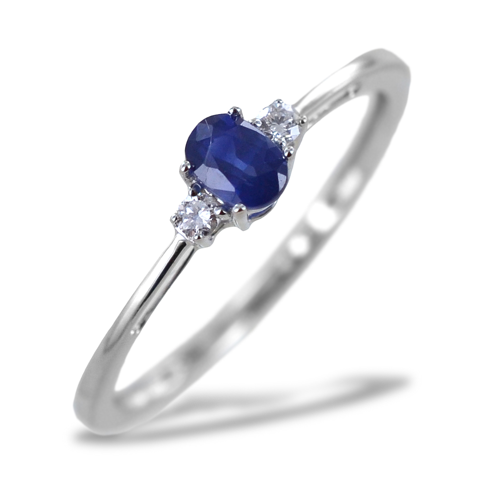Questo anello con zaffiro è un gioiello classico grazie al piccolo zaffiro a taglio ovale e i due diamanti laterali, e ha una solida montatura, che lo rende un gioiello molto resistente.