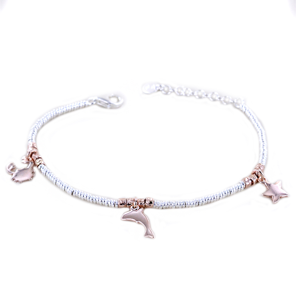 Bracciale in argento con charms delfino stella marina granchio rosati