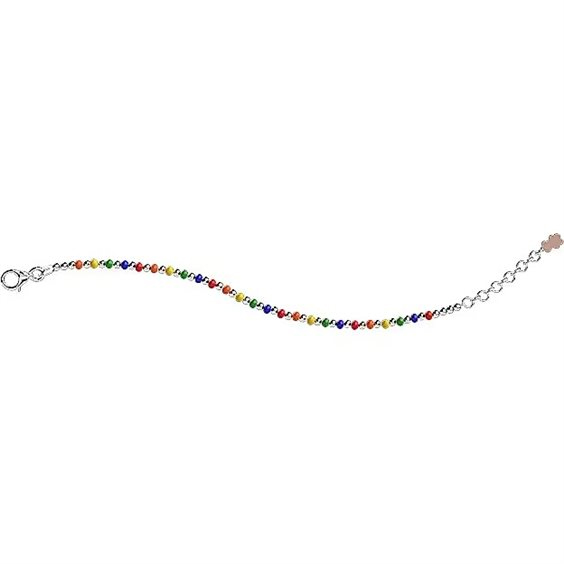 Bracciale da bambina Nanan con sfere multicolor. Bracciale in argento 925/000 con piccole sfere e chiusura a moschettone in argento regolabile. Lunghezza del bracciale 15 cm circa. Regolabile da 13 a 15 cm.