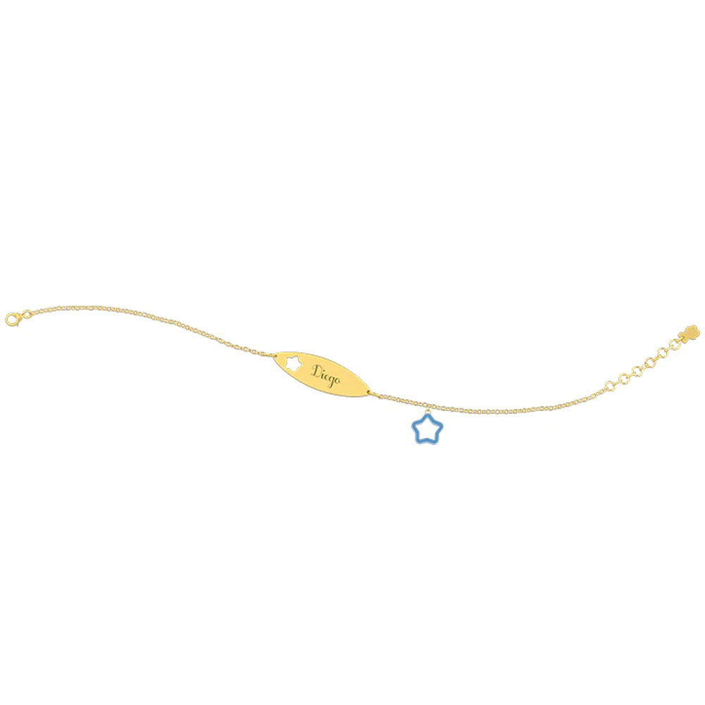 Bracciale da bambino Nanan in oro 9 kt, con stellina azzurra e targhetta per l'incisione del nome.