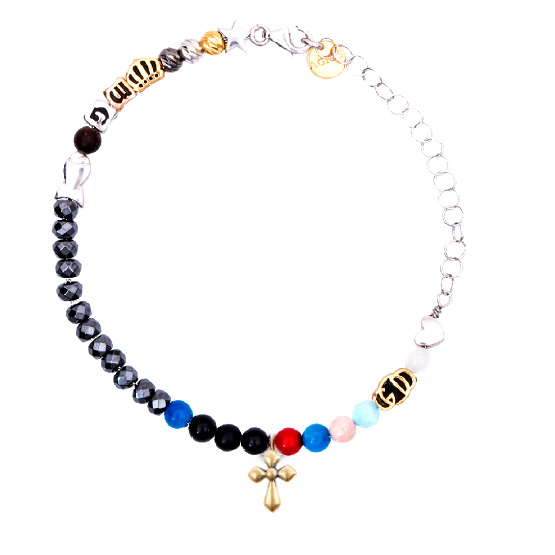 Bracciale religioso Agios gioielli Iesus in argento e pietre naturali con croce dorata