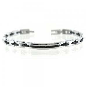 Bracciale da uomo in acciaio collezione .. gioielli Zancan. Bracciale in acciaio 316L ipoallergenico di colore silver con finitura lucida ed inserti in PVD nero. Incastonatura dello zaffiro nella parte centrale del Bracciale. Dimensione della parte centrale 35 mm circa. Lunghezza del bracciale 21 cm circa.