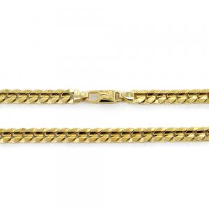 Questa catena in oro giallo è un modello di catena molto vistosa da uomo, di lunghezza 50 cm. E' una catena elegante e di grande vestibilità, molto comoda all'indosso vista la maglia compatta. E' un gioiello importante e di effetto, con la superficie molto luminosa. la catena è a maglia piena, quindi massiccia.