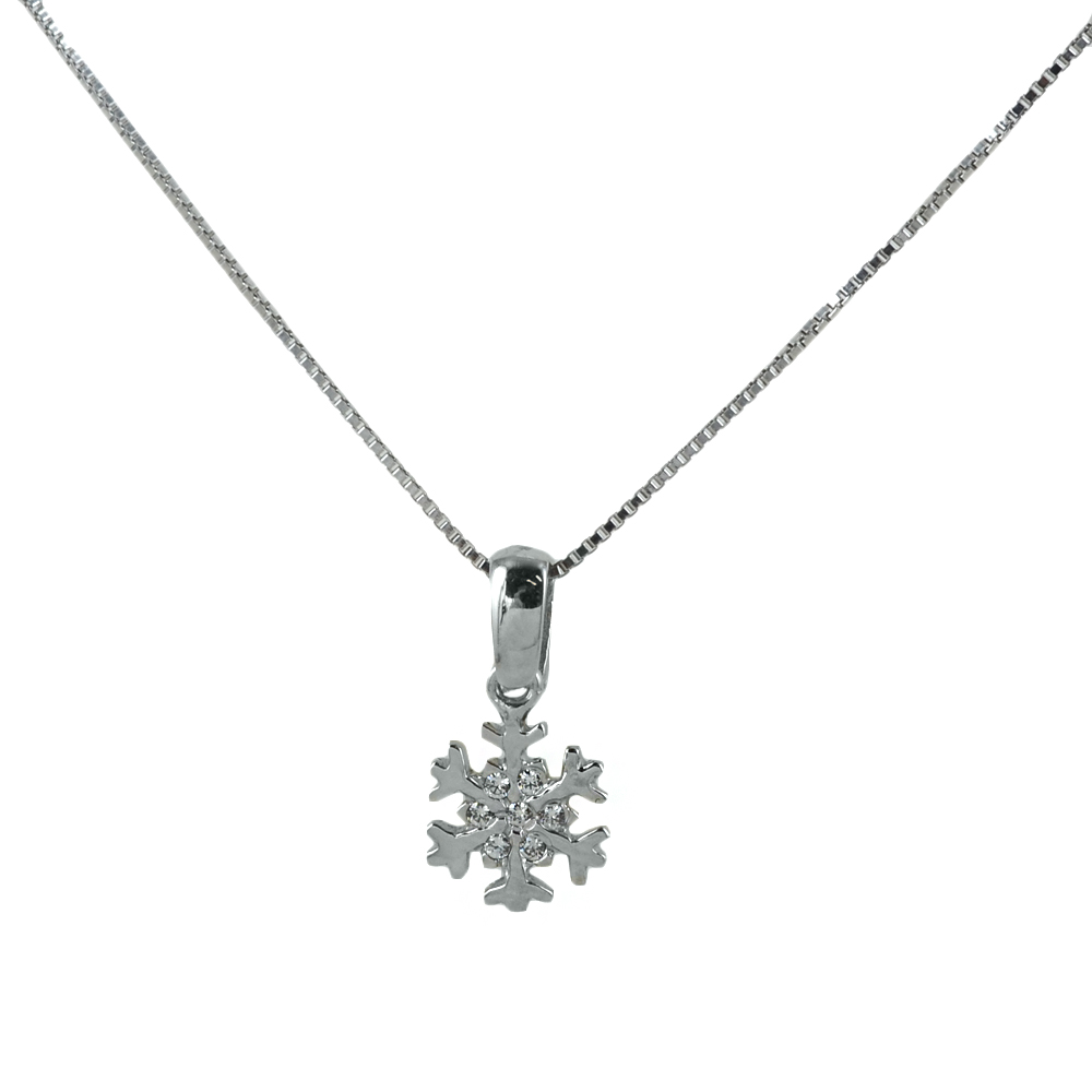 Collana ciondolo Fiocco di Neve in oro e argento con zirconi