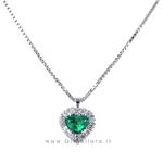Collana con ciondolo Cuore con diamanti e smeraldo