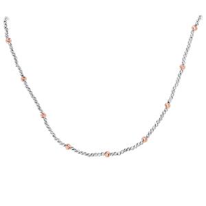 La collana è un girocollo di lunghezza da 42 cm, con sfere in oro bianco e sfere in oro rosa sparse sul girocollo, è un gioiello molto raffinato, elegante e perfetto da indossare per valorizzare il decoltè. Le sfere di oro rosè sparse sul girocollo sono a lavorazione sfaccettata molto luminose, medesima lavorazione delle sfere in oro bianco. è un girocollo estremamente luminoso, acquistabile in parure con il braccialetto.