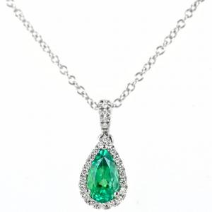 Collana e pendente a goccia di Smeraldo Columbia e contorno di diamanti