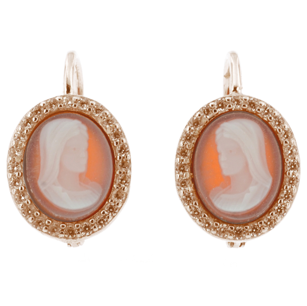Orecchini a pendente Madonna in Cammeo e argento Agios