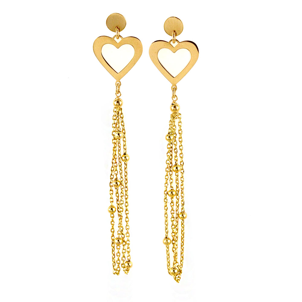 Orecchini Cuore con pendente a catenelle in oro giallo