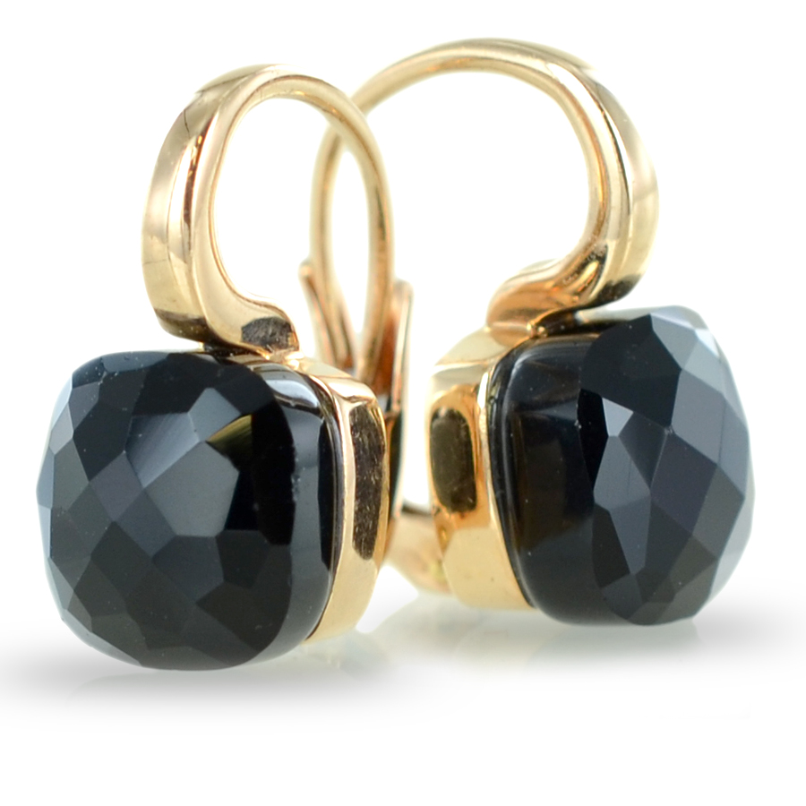 Questi orecchini sono in oro rosè ed hanno una pietra quarzo di colore nero al centro, la pietra è sfaccettata di forma piramidale, sono un bellissimo gioiello. Questi orecchini sono una bella idea regalo sia per una ragazza che per una signora, sono un orecchino adatto a un'ampia fascia di età come idea regalo da donna, sono infatti apprezzati da ragazze dai 20-25 anni in su, e sono una bella idea regalo per una signora elegante e moderna sui 50 anni di età. insomma, sono un regalo perfetto per tutte lòe donne che amano i gioielli in oro rosa, con passione per le pietre colorate, e per i gioielli importanti ma non eccessivamente vistosi.