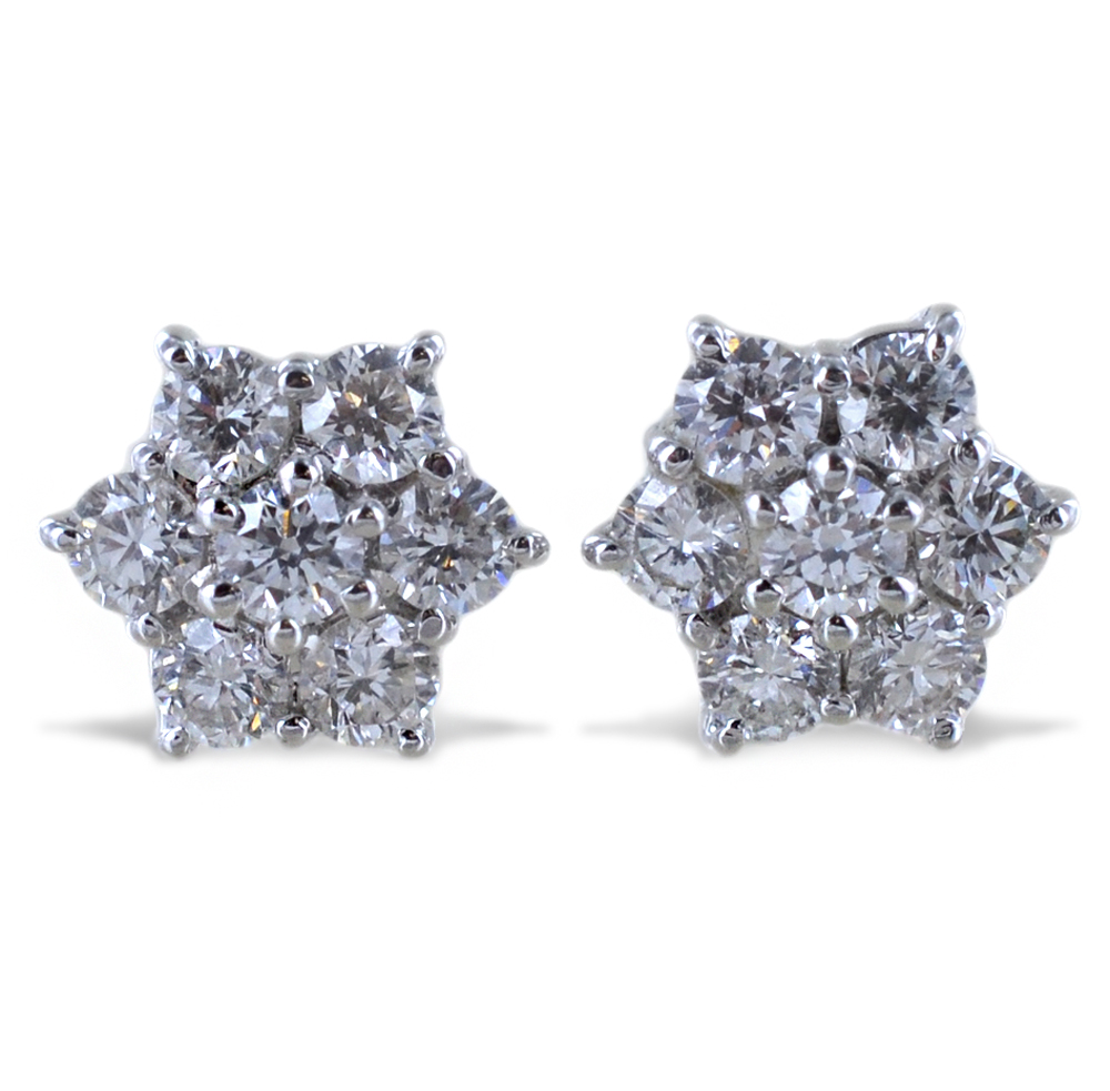 Questi orecchini sono un modello di orecchini a Rosetta, realizzati a forma di fiore con diamanti. Ogni orecchino ha un diamante al centro e 6 diamanti in contorno, per un totale complessivo di 14 diamanti, ed una caratura di 0.78 carati. Gli orecchini a rosetta sono un gioiello classico, adatti ad una donna adulta, solitamente sono scelti da un pubblico femminile di età a partire dai 30-35 anni.