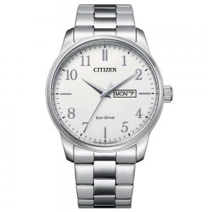 Orologio da polso Citizen per uomo della collezione Classic. Cassa in acciaio diametro 41 mm. Bracciale in acciaio con fondello serrato a vite. Orologio con Quadrante bianco con dettagli silver. La resistenza all'acqua è di 10 Atm. Il Movimento è Eco Drive Con riserva di carica di 6 mesi e con funzione Solo Tempo e data con datario. Orologio con vetro minerale.