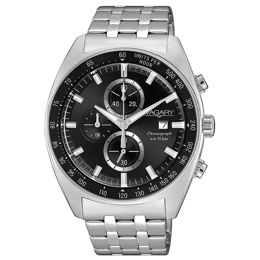 Orologio Vagary da uomo nero acciaio crono VA1-218-51